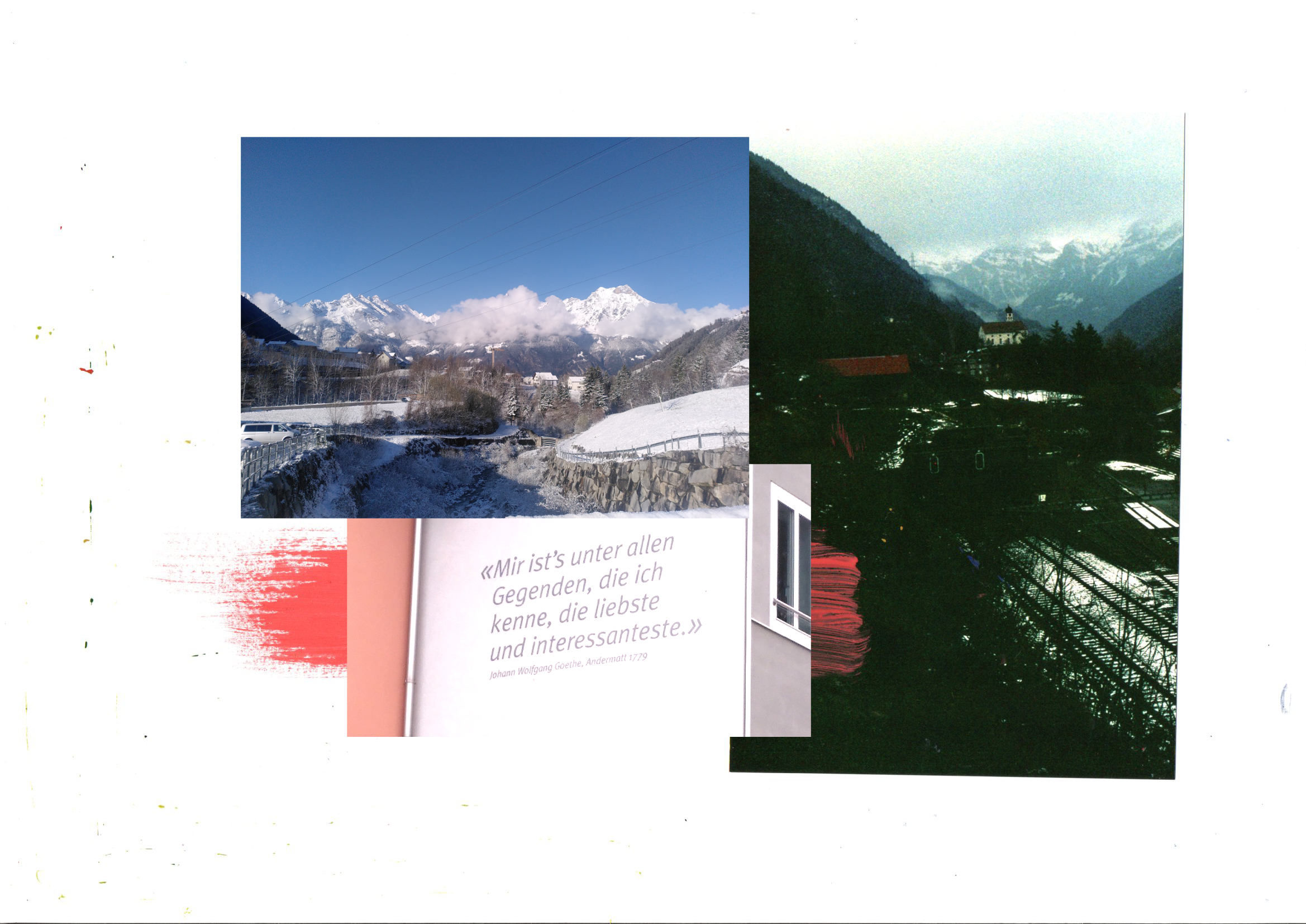 On the path, the history of the route is documented in various ways, underlining a succession of human interventions on the landscape to accelerate the journey. The construction of the Gotthard railway, for example, started in 1872 and the full train line opened 10 years later. At the beginning of the 19th century, it took travelers 10 days to traverse it on horse, and via some paved roads. The railway cut it to a mere 8 hours, and with improved train efficiency it now takes around 3. In parallel to the railway, there are now also multiple car roads, including a busy motorway that echoes through the mountains at any given second.