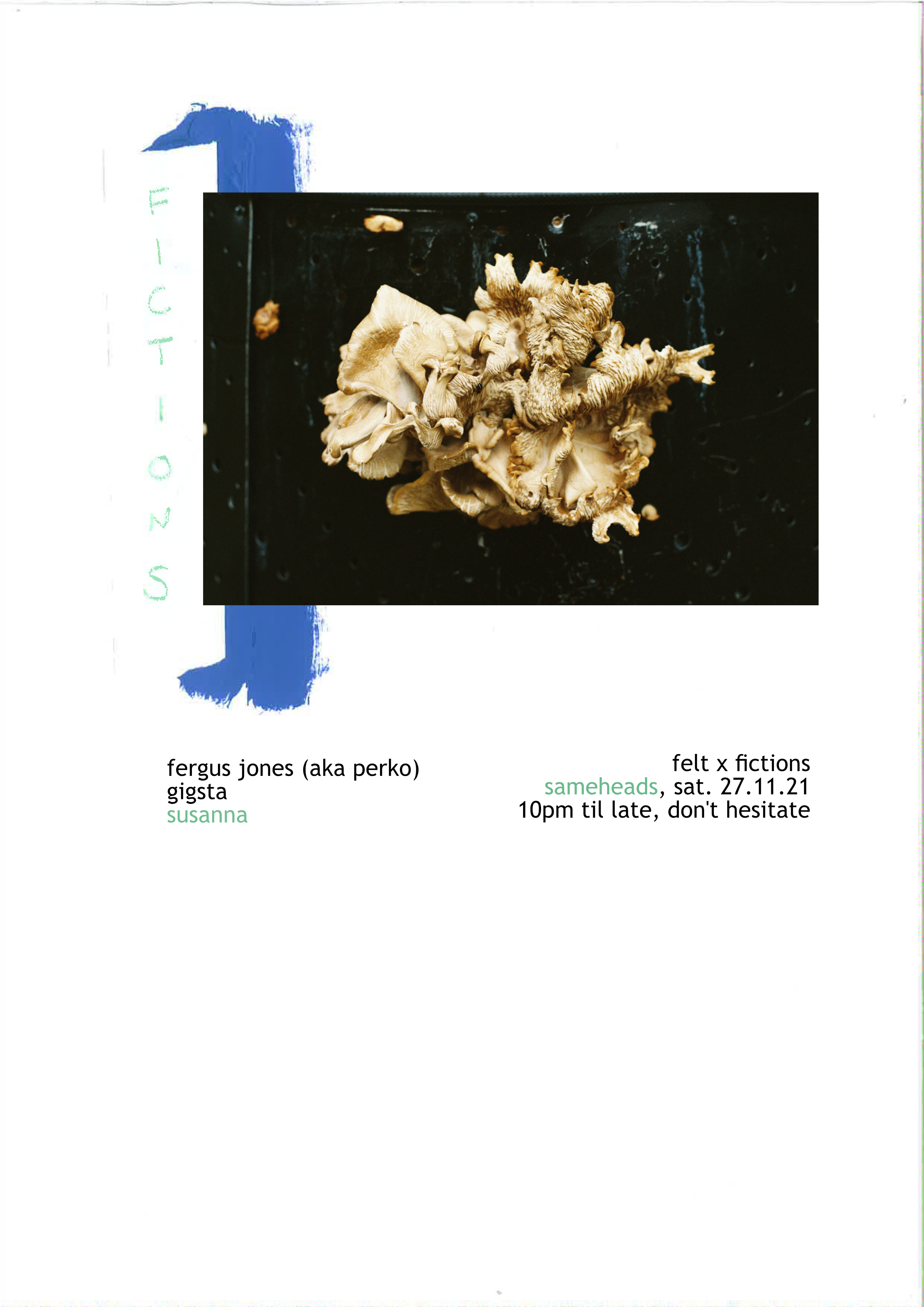 Music-wise, Susanna will warm things up. Check out the first edition of her great new show ‘Gut Feeling’ on Lyl Radio. And then Fergus Jones (aka Perko) and I will continue playing every single track of our collection to each other: