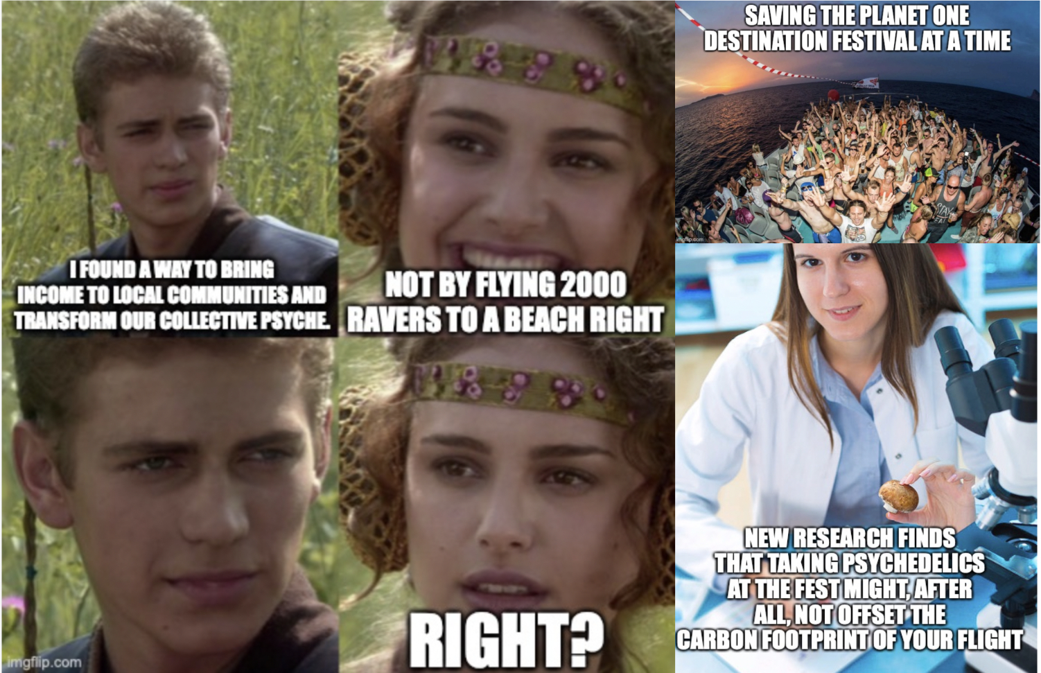 I’ve written a bit about destination festivals, for example. In 2021 I travelled to Croatia and tried to figure out how I felt about the experience. The following year, I drew a parallel between destination festivals and imperial modes of living. A few months ago, I wrote about Stop Tomorrow Land Alpe d’Huez, a collective fighting against an EDM festival held on a melting mountain.